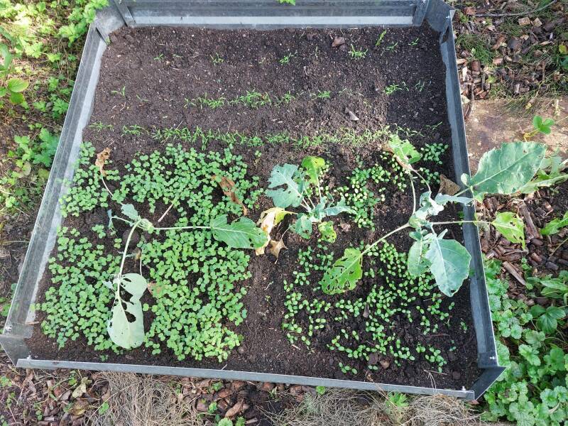 Op dit moment zijn de groentebedden grotendeels leeg op wat palm- en boerenkool, knolselderij en pastinaak na. Er zijn groenbemesters gezaaid, zoals lupine, boekweit en incarnaatklaver.