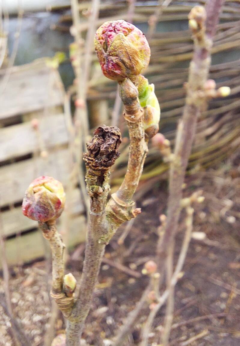 Er zijn al diverse bomen en struiken die hun knopjes laten zien.
